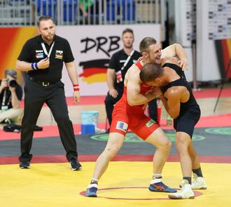 Gut vorbereitet hatte sich der Sportpolizist, der am Bundesstützpunkt Leipzig unter den Fittichen von Landestrainer Andreas Bering trainiert, auf die Titelkämpfe, in seinen Vorrundenbegegnungen bezwang Maximilian Schwabe zunächst Lorenzo Voppichler (KSV Föhrenbach) mit 10:0 Punkten, im Viertelfinale wies der KSV-Ringer seinen Kontrahenten Jason Partenheimer (RE Eiche Büdesheim) ebenfalls vorzeitig mit 12:4 durch technische Überlegenheit in die Schranken. Mit einem Halbfinalerfolg über Noah Englich (KSV Witten), dem Sohn des Olympiazweiten von Peking 2008 Mirko Englich, katapultierte sich Maximilian Schwabe ins Finale.