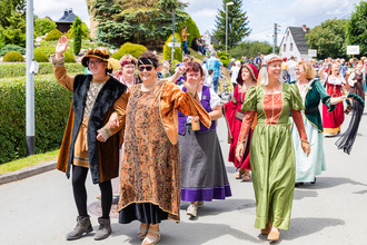 “So kommet und feiert mit uns!” - in historischen Kostümen lud der Förderverein zusammen mit dem Heimat- & Wanderverein, dem Geflügelzüchterverein und der Kirchgemeinde zum Eröffnungsspektakel an der Hauptpforte ein und die Besucher strömten in das Schloss Mühltroff - vorbei an selbstgemachtem Honig, der Sau am Spieß und zahlreichen Händlern. Schaulustige konnten alte Oldtimer bestaunen, Handwerkern über die Schulter schauen oder selbst aktiv werden, z.B. bei der Herstellung von Badesalz am Stand der Schlosskinder. Zudem erklangen Melodien im Kospothsaal und es gab Torte und Kaffee in bunten Sammeltassen. An jeder Ecke gab es etwas Neues in den alten Gemäuern und auf dem Vorplatz zu entdecken. Bis in den Abend hinein fanden sich noch Leute an der “Schlossschänke” ein.