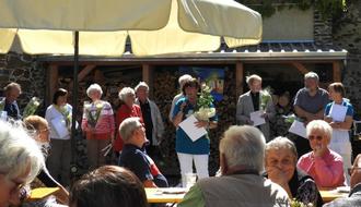Würden die Prognosen für das Bilderbuchwetter am Nachmittag eintreffen oder nicht? Fast auf den Punkt genau zu Beginn unseres Festes erstrahlte dann die Sonne und lockte die Besucher ins Heimateck – die Vorbereitungen waren nicht vergeblich!!