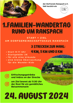 Liebe Wanderfreunde und liebe Familien, der Dorfverein Ranspach e.V. lädt herzlich ein zum