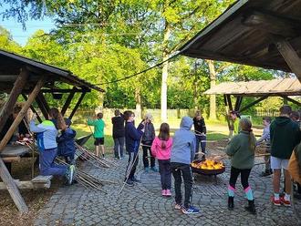 Nach dem Abendbrot zündeten wir ein Lagerfeuer an und backten leckere Stockbrote.