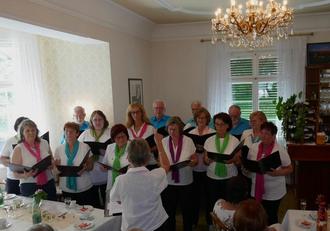 Unser Chor kann auf ein ereignisreiches Frühjahr zurückblicken. Am 10. Mai konnten wir auf Einladung der Langenbucher wieder an deren Frühlingsfest teilnehmen. Wir haben fleißig geübt und es ist uns gelungen, in urlaubsbedingt reduzierter Besetzung eine schöne kleine Liedauswahl vorzutragen. Es wurde für uns alle ein fröhlicher Abend! Nun ging es an die Vorbereitungen des 30jährigen Jubiläums des SFöV – für uns eine schöne Gelegenheit, erneut Frühlingslieder zu singen (sonst proben wir ab Februar Weihnachtslieder). Die eigentlich für den 21. Juni vorgesehene Chorausfahrt haben wir abgesagt – gern wollten wir als Mitglieder des SFöV die Veranstaltung musikalisch umrahmen. Schon das Einsingen im Garten des „Landhotels“ hat Spaß gemacht, war es doch an diesem Tag sehr heiß und die Akustik im Schatten des Baumes ein Traum! Im „Landhotel“ waren die Tische liebevoll gedeckt und der Kuchen einfach köstlich! Wir haben gern und mit Freude diese Veranstaltung begleitet! Es war für uns alle ein unvergesslicher Nachmittag! Das war der Rückblick auf die chormusikalischen Veranstaltungen. Der tolle Einsatz unserer Chormitglieder anlässlich der geöffneten Kaffeestube im Schloss am 15. Juni soll und darf nicht unerwähnt bleiben! Ein herzlicher Dank geht an alle, die diese Aktion im Schloss mit vorbereitet und durchgeführt haben. Danke für die vorzüglichen Torten und alles Mittun, das zum Gelingen des Nachmittags beigetragen hat! Dankeschön unseren Kaffeegästen – es war uns eine Freude!