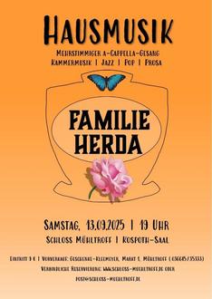 Am Samstag, den 13.09.2025 lädt Familie Herda, die lange Zeit in Zeulenroda gelebt und musikalisch gewirkt hat, um 19 Uhr zu einem Hausmusikabend in den Kospothsaal in das Schloss Mühltroff.