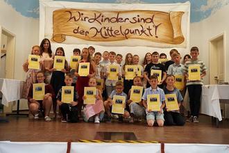 Alle Kinder stellten ihre sportlichen Fähigkeiten in den Disziplinen Weitsprung, Schlagballweitwurf und 50m-Sprint unter Beweis. Schlussendlich wurden bei bestem Sportfestwetter und nach fantastischen sportlichen Leistungen die drei besten Mädchen und Jungen jeder Klassenstufe geehrt.