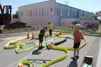Für Spiel und Spaß sorgten u.a. das Hüpfen auf der Hüpfburg, Racerrennen, Wasserspritzen und Minigolfen mit der Feuerwehr. Auch handwerkliches und kreatives Können wurde beim Arbeiten und Werkeln mit Holz und Bemalen von Gipsfiguren unter Beweis gestellt. Bunte Ballons mit Wunschkarten stiegen in den Himmel, selbstgestaltete Leinwände und lustige Bilder aus der Fotobox konnten als Erinnerung an den schönen Tag mit nach Hause genommen werden. Ebenso waren die wunderschön geschminkten Kindergesichter ein echter Hingucker. Für das leibliche Wohl wurde auch bestens gesorgt. So organisierten unsere Eltern einen Kuchenbasar mit selbstgebackenen Kuchen. Leckereien vom Grill und ein erfrischendes Eis standen ebenfalls auf der Speisekarte.