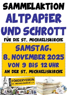Aber „nach der Sammlung ist vor der Sammlung“. Die nächste Papier- und Schrottsammlung findet am Samstag, dem 8. November 2025 vor unserer Kirche statt. Wir freuen uns auf Ihr Gesammeltes.