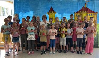 Am 19.08.2025 verabschiedeten wir unsere Kollegin Jutta Voit in den wohlverdienten Ruhestand. Seit 45 Jahren arbeitete sie mit ganz viel Herzblut und Engagement bei uns in der Kita „Kleeblatt“. Anfangs viele Jahre bei den Kleinsten in der Kinderkrippe als „Tante Jutta“, später dann im Kindergarten und die letzten Jahre im Hort. Alle Hortkinder erhielten von Frau Voit zur Erinnerung eine von ihr selbst gezogene Pflanze.