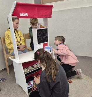 Pünktlich zum Weihnachtsfest wurde in der Kita Lutki ein kleiner Rewe-Markt eröffnet. Natürlich handelt es sich hierbei um einen Kaufmannsladen für Kinder. Die 3. Klasse freut sich besonders über dieses Gruppengeschenk, welches uns durch Marktleiterin Beate Sader aus dem Rewe-Markt Cottbus gesponsert wurde. Kinder aller Hortgruppen nehmen die neue Atraktion dankend an und üben fleißig ihre neusten Verkaufs-Strategien. So können spielend verschiedene Bildungsbereiche, wie Kommunikation, Mathe und Gestaltung geübt werden. Wir sagen ganz herzlich: Danke!