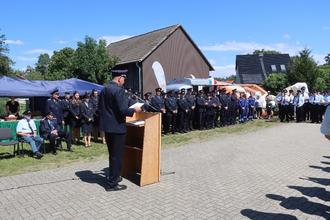 Am Festplatz angekommen, begrüßte der Ortswehrführer die 14 anwesenden Gastwehren sowie den Amtsdirektor des Amtes Peitz, Herrn Norbert Krüger, den Bürgermeister René Sonke, den Amtswehrführer Mirko Schneider, den stellvertretenden Kreisbrandmeister, und vom Kreisfeuerwehrverband Christine Semisch und René Schulze sowie die zahlreich erschienenen Gäste.