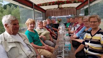 Endlich haben wir uns zu einer Ausfahrt mit dem Traktor und Anhänger von Manne getroffen, 14 Frauen und ein Mann. Pünktlich und bei herrlichem Wetter starteten wir. Natürlich waren auch manche Leckereien und gute Getränke mit an Bord- was sein muss, das muss sein. Vorbei an vielen schönen Hinguckern der Natur, die sich schon langsam auf den Herbst vorbereiten und vielen schönen Ortschaften wie Turnow, Preilack, Tauer und letztendlich Jänschwalde, unser Ziel, so war es, wie immer, eine schöne Fahrt. Im Konsum in Jänschwalde, wo wir zum ersten Mal waren, stärkten wir uns mit einem üppigen und wohlschmeckenden Mittagessen. Eine schöne Einrichtung und freundliche Mitarbeiter erlebten wir hier und wir werden bestimmt wieder einmal dorthin starten. Vielen Dank, liebe Mitarbeiter für alles. Uns hat es bei Ihnen gut gefallen. Unseren Weg setzten wir über Radewiese, Heinersbrück, Bärenbrück, Neuendorf bis an den Ostsee weiter fort. Hier machten wir eine Kaffeepause und ließen uns Pfannkuchen und guten Kaffee schmecken. Danke liebe Erika auch dafür. Lakoma und Willmersdorf, Skadow, Döbbrick und ein kleiner Zwischenstopp am Auerochsen-Gehege, wo wir alle auch schon lange nicht mehr waren, waren unsere nächsten Ziele. Nun ging die lustige Fahrt weiter in Richtung Heimat über Maiberg und Drehnow. Es war ein wunderschönes Erlebnis für uns und wir möchten unserem Manne ganz herzlich Danke sagen. Alles hat wieder gut geklappt und wir kamen gut nach Hause. Hoffentlich bleiben wir alle gesund und können im nächsten Jahr wieder eine schöne Fahrt mit dir machen.