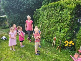 In der letzten Augustwoche durften wir als Kindertagesstätte eine ganz besondere Erfahrung machen: Der Gartenverein Dahlie e.V. aus Jänschwalde Ost hatte uns eingeladen, die Gartensparte zu besuchen und hatte außerdem für die Kinder ein abwechslungsreiches Programm vorbereitet. Sechs Gartenparzellen öffneten ihre Türen und boten spannende Mitmachstationen an: Erdbeeren einpflanzen, Blumen säen, Gartengeräte erkunden, Obst und Gemüse probieren, ein buntes Obst- und Gemüsememory spielen, sowie Pflanzen im Gemüsebeet suchen.