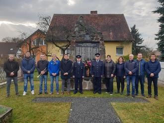 Anlässlich des Volkstrauertages am 16.11.2025 trafen sich Gemeindevertreter, Kameraden der Freiwilligen Feuerwehr und des Sportvereins, um gemeinsam den Opfern von Krieg, Terror, Gewalt und Verfolgung zu gedenken. Die musikalische Umrahmung von C. Frahnow verlieh der Zeremonie an Bedeutsamkeit von Frieden und Demokratie in unserer Gesellschaft. Mit der Kranzniederlegung widmeten sie ihr Mitgefühl den Millionen von getöteten Soldaten und all den Opfern von Gewalt und Krieg, an Kindern, Frauen und Männern aller Völker des ersten und zweiten Weltkrieges.