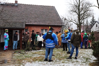 Am Sonntag trafen sich ab 11.00 Uhr wieder alle bunt kostümiert am Treffpunkt zum Zampern ein. Aufgeteilt in drei Trupps ging es bis spät abends auf die Höfe in Dorf, Kolonie und die Wiesen, begleitet jeweils von den „Jänschwalder Blasmusikanten“, den „Ströbitzer Musikanten“ und den „Haselmäusen“. Damit ist das Fastnachtswochenende aber noch nicht vorbei, denn traditionell unterstützen die Jänschwalder jedes Jahr auch die Radewieser beim Zampern und so wird ein bunter lustiger Trupp am Montagvormittag in Richtung Radewiese marschieren.