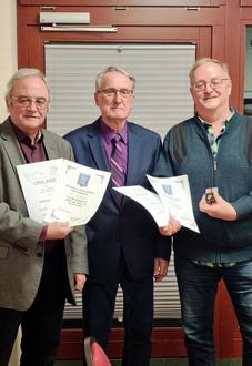 SB Chrobot und SB Huhn Goldene Ehrennadel des BCV mit Urkunde (für 40 Jahre Singetätigkeit sowie Urkunde für 40 Jahre Mitgliedschaft im MC Peitz e.V: (Foto: A. Chrobot)
