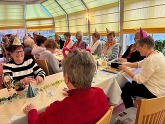 Unsere Kaffeetafel im Landhotel Turnow wurde auch in diesem Jahr wieder am 26. Februar mit einer Faschingsfeier bereichert. Unsere Gitti hat dazu alle herzlich eingeladen. Das Personal vom Landhotel hat gut vorgesorgt und eine sehr schön eingedeckte und der Feier entsprechend dekorierte Tafel mit vielen Plätzen bereitgestellt. Unsere Seniorinnen haben es sich nicht nehmen lassen und sind sehr zahlreich erschienen. Die Freude war sehr groß, dass so viele eingetroffen sind. Eine sehr schöne Kaffeetafel mit sehr gut schmeckenden Pfannkuchen sowie duftendem Kaffee wurden aufgefahren. Und gleich wurde es still im Raum, jeder machte sich an seinem sehr großen Pfannkuchen zu schaffen. Gitti gab danach noch die neuesten Termine bekannt, denn das Jahr fängt ja erst an und da ist so einiges vom Seniorenbeirat des Amtes Peitz vorgesehen. Nicht nur diese Termine sind begehrt, auch die schönen Reisen die das Reisebüro für 2025 bereithält. Die Teilnahmeliste für die erste Ausfahrt wurde aufgestellt, denn schließlich wollen unsere Seniorinnen gern wieder reisen. Aber das war nur der organisatorische Teil, der ja unbedingt erledigt werden musste. Danach trafen die Musiker für unser Faschingsprogramm ein. Nach einer kurzen Einführung der beiden Musikanten, begann der gemütliche Teil. Es wurde musiziert, mit Akkordeon und Gitarre und alle sangen wieder freudig mit. Das ist das, was unsere Seniorinnen auch mal brauchen. Mal richtig aus sich herauskommen. Ja und es wurde sogar getanzt. Ein Zeichen der Freude und der Gemütlichkeit. Andrea hat uns zwischendurch mit einer lustigen Geschichte erfreut. Könnte auch aus dem Leben gegriffen sein. Und weiter ging es mit Musik. Fast haben wir kein Ende gefunden, die Musiker hatten es schwer, die Unterhaltung zu beenden. Jedenfalls haben wir wieder festgestellt, man soll die Feste feiern wie sie fallen. Und diesem Motto möchten wir treu bleiben. Mit einem gemeinsamen Abendessen haben wir mit Freude im Herzen unsere Kaffeetafel im Landhotel verlassen und unseren Heimweg angetreten. Ein herzliches Dankeschön dem Personal des Landhotels für die gute Bewirtung und ein herzliches Dankeschön an unsere Gitti mit Unterstützung von Sigrid für die Organisation der wunderschönen Faschingsfeier. Nun freuen wir uns wieder auf den 26. März, unsere nächste Kaffeetafel, auch da soll es wieder eine Überraschung geben.