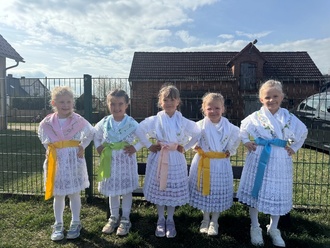 Gegen 10:00 Uhr starteten wir mit einem Osterspaziergang durch das Dorf. Das Highlight waren die Mädchen mit ihren hübsch geschmückten Trachten. Vielen Dank an Bettina Schulz und Doreen Wackernagel für das vorbereiten der Tücher und Schürzen. Frau Hensel und Nadine haben den Mädchen die Trachten angezogen. Am Ende des Osterspaziergangs suchten wir in einem kleinen Wäldchen das Osterwasser. Im Kindergarten angekommen, versteckte der Osterhase für jedes Kind ein Osterkörbchen. Darin waren ein Osterei, ein Schokoladenosterhase und ein selbstgebastelter Osterhase der Eltern.