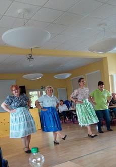 Auch im Mai und Juni fand wieder der Tanztee in Drewitz statt. Bei Kaffee und Kuchen wurde sich rege unterhalten und auch das Tanzen kam nicht zu kurz. Für Überraschung bei den Gästen sorgten im Mai die Damen der „Tanzgruppe Barbuk“, die mit ihren wendischen Tänzen für gute Stimmung sorgten. Natürlich wurde auch die Annemarie-Polka getanzt. Dazu wurden alle Gäste mit aufgefordert.