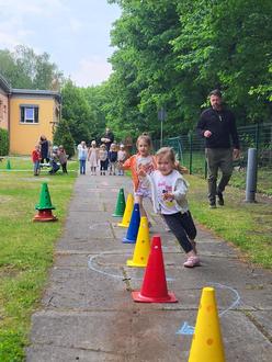 Der Tag war gefüllt mit spannenden Aktivitäten bei lustiger Kindermusik. An verschiedenen Stationen gab es jede Menge zu erleben: Beim Eierlaufen zeigten die Kinder Geschick und Konzentration, um das “rohe Ei” sicher ins Ziel zu bringen. Der aufgebaute Pacours forderte Schnelligkeit und Koordination. Beim Sackhüpfen sprangen die kleinen Hüpfer mit voller Begeisterung um die Wette, während auch das Dosenwerfen für große Freude sorgte.