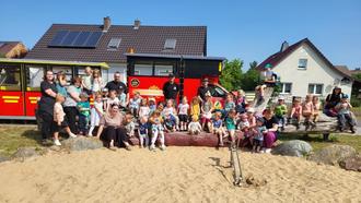 Am 4. Juni gab es eine riesige Überraschung in unserer Kita Lutki! Plötzlich stand der Peitzer Karpfenbummler vor der Tür und die Augen der Kinder strahlten, als sie die Bimmelbahn entdeckten. Es war ein aufregender Moment, als alle einsteigen durften, um eine Rundfahrt zu machen. Mit Eisenbahngeräuschen ging die Fahrt in Richtung Jänschwalde Dorf los. Die Kinder konnten sich währenddessen den Wind um die Ohren pusten lassen und den Wald entdecken.