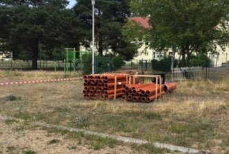 Der Bau der Schulcontaineranlage schreitet voran. Die Fundamente wurden bereits erstellt.