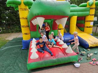 Das Highlight des Tages war zweifelsohne die große Hüpfburg, auf der die Kinder mit Begeisterung sprangen und lachten.