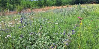 Mit jedem Schritt in Richtung Frühsommer wird der Park lebendiger. Die Wiesen sind ein Teppich aus Farben – Kartäusernelke, Gemeine Ochsenzunge, Wiesensalbei, Gelber Wau und Gewöhnlicher Natternkopf finden wir vor. Der süße Duft vom echten Labkraut begleitet uns. Marienkäfer, Schmetterlinge, Bienen und Hummeln sammeln fleißig Nektar und Pollen.