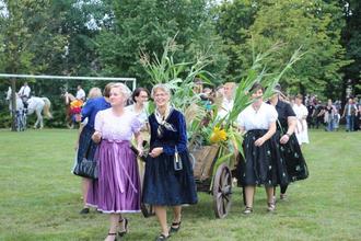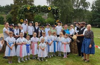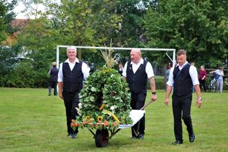 Nach zwei Tagen Vorbereitung, unter anderem in Form des Flechtens der Pforte, der Kränze und der Erntekrone begann dann endlich das traditionelle Erntefest für Jung und Alt am 2. September 2023.