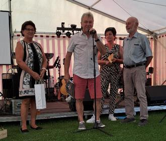 Nach der Laudatio überreichten Bärenbrücker Wilfried Neuber und seiner Gattin Rita einige Geschenke. Sichtlich gerührt richtete Wilfried Neuber Dankesworte an alle. Er nutzte die Gelegenheit für eine symbolische Schlüsselübergabe an seine Nachfolgerin Marion Adam, die das Amt als Ortsvorsteherin (so die amtliche Bezeichnung) von Bärenbrück seit der Kommunalwahl vom 09.06.2024 inne hat.