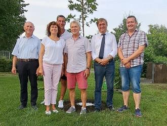 Wilfried Neuber mit den Ehrengästen vor der gepflanzten Eiche