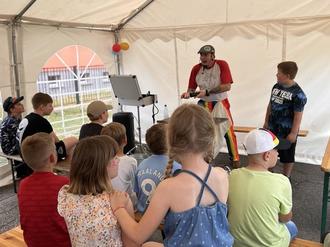 So war der 1. Juni nicht nur ein Fest für unsere Kinder, sondern auch ein Dankeschön an alle, die uns in den 20 Jahren Vereinsgeschichte begleitet und unterstützt haben. Und weil man so ein Fest mit vereinten Kräften besser stemmen kann, haben wir uns den „SV-Blau Weiß Drewitz e.V.“ und die Freiwillige Feuerwehr mit ins Boot geholt. Gemeinsam mit unseren Kindern und Enkeln haben wir einen fröhlichen Tag mit Spiel, Spaß und guter Laune verbracht. Auf den Hüpfburgen und bei Sportspielen konnten sich die Kinder austoben und ihr Können unter Beweis stellen. Am Schminkstand wurden sie in elfengleiche Wesen oder kleine Raubtiere verwandelt. Zur Stärkung gab Kuchen und allerlei süße Leckereien. Der Getränkewagen sorgte dafür, dass niemand durstig blieb und wer es lieber deftiger mag, wurde von der Feuerwehr mit Bratwurst, leckeren Burgern und Bouletten versorgt. Das Highlight des Tages war jedoch der Auftritt von „Mr. Kerosin“. Mit seiner „Zauberei-Mitmachshow“ zog er sowohl die kleinen als auch die großen Zuschauer in seinen Bann und entführte sie auf ganz lustige Art und Weise in eine Welt der Illusionen.