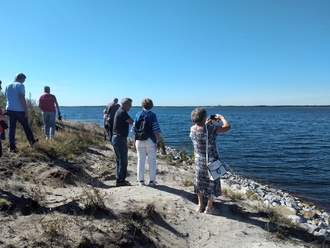 Gleich am ersten Tag hatten wir eine Rundfahrt mit den Kleinbussen der Teichlandstiftung und des Amtes Peitz durch die Gemeinde Heinersbrück und auch zum Cottbuser Ostsee organisiert, um interessante und neue Motive zu finden. Horst Nattke und Detlef Schimtz kutschierten uns zuverlässig auch durch unwegsames Gelände. Am Rande des Hafens von Neuendorf erwartete uns der Bürgermeister von Teichland, Harald Groba, sodass wir recht nah am Wasser die Veränderungen nach zwei Jahren erkennen konnten. Auch diese Motive wurden dann im „Gemeindehaus-Atelier“ auf vielen Bildern festgehalten. Insgesamt haben wir 16 Hobbykünstler in den drei Tagen 55 Bilder mit Acrylfarbe auf Leinwänden erschaffen, es war also ein sehr arbeitsintensives, kreatives Pleinair. Beliebte Malmotive waren auch die Tiere der Agrargenossenschaft, die Idylle an der Malxe bei Sawoda und auch die Heinersbrücker Kirche.