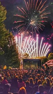 Der Abend fand sein Ende mit einem Kunstfeuerwerk. Leise und verhalten beginnend auf dem Dach des Hüttenwerks zu sphärischen Klängen, um sich dann zur Musik von Carl Orffs „O Fortuna“ zu einem grandiosen Höhenfeuerwerk zu entladen. Was für ein Abend!!