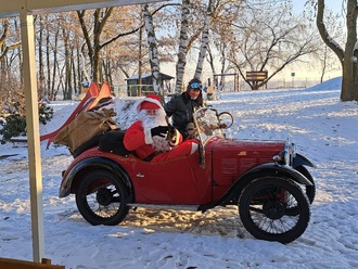 Wie jedes Jahr bestaunten die Kinderaugen das außergewöhnliche Gefährt des Bärtigen und seines Chauffeurs. Schließlich gibt’s einen Weihnachtsmann im roten Cabrio nicht so oft.