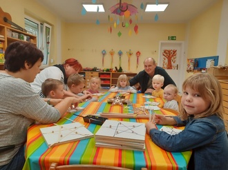 Aber auch die Kinder unserer Kita hatten viele Möglichkeiten zum Basteln und kreativen Tätigsein. An einem Vormittag überraschte uns sogar ein Papa und stellte den Kindern ein Angebot zum Basteln von zauberhaften Holzsternen als Weihnachtsgeschenk für die Eltern vor. Mit großer Freude und Aufmerksamkeit wurden da Holzstreifen gelegt und zusammengeklebt.