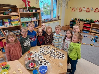 Aber nicht nur gebastelt und gesungen wurde bei uns. Frischer Plätzchenduft lag auch in der Luft, denn als kleine Weihnachtsüberraschung für die Eltern sollte der Bauch unserer gebastelten Schneemanngläser schließlich noch mit leckeren Keksen gefüllt werden. Emsig wurde Teig geknetet, ausgestochen und Kugeln gerollt. Zum Naschen blieb auch noch ausreichend übrig.