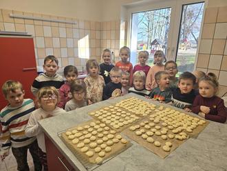 Auch das Plätzchenbacken durfte natürlich nicht fehlen, und so wurden wieder Kekskugeln gerollt und anschließend mit der Gabel plattgedrückt. Ein paar der entstandenen „Schneeflöckchen - Kekse“ durften sogar zum Kosten mit nach Hause genommen werden.