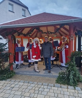 Wie immer am 1. Advent eröffnet unser Bürgermeister Lutz Schumann bei herrlichem Wetter unseren Weihnachtsmarkt. Nachdem Carla das Programm vorstellte, wurden die Gäste vom Frauenchor Hohenleipisch weihnachtlich in Stimmung gebracht. Die Kaffeestube wurde eröffnet und die Kinder versammelten sich im Keller zum Basteln. Vorbei an den geschmückten Hütten vom Garten- und Obstbau-Verein, sowie den VfB Hohenleipisch. Die Feuerwehr war wie immer auch in diesem Jahr der Anziehungspunkt für die Kinder. Rundfahrten aber auch Köstlichkeiten und leckere Getränke waren in diesem Jahr der Renner. Die Bläsergruppe der Mühlenmusikanten hatte sich im Pavillon aufgestellt. Ein Hingucker mit ihren Weihnachtsmannkostümen. Weihnachtliche Klänge rund um das Gelände des Gemeindezentrums. Eine Freude für die Besucher. Dann war es endlich so weit.