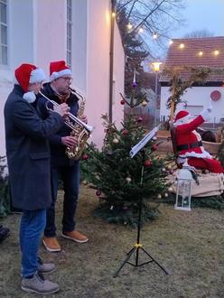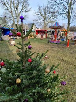 Und damit wir hier ein letztes Mal im Jahr in der Dorfgemeinschaft miteinander feiern, gibt's auch nach der Kirche einen kleinen aber feinen Weihnachtsmarkt mit warmen Getränken, Leckerem vom Grill, Süßes, Handwerk und Weihnachtsstimmung. Liebevoll ist das Areal neben der Kirche vorbereitet. Sogar ein kleines Karussell drehte lustig seine Runden und ließ Kinderaugen strahlen. Die Lämmer mit ihrer Mama, der Esel im Gehege, der Weihnachtsmann mit dem Geschenkesack sowie die Live-Musik von Danny und Karsten brachten eine besondere Weihnachtsstimmung aufs Gelände.