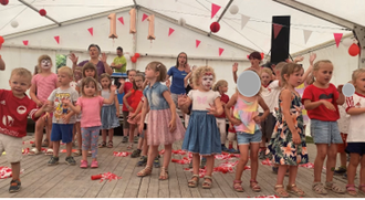 Die Kinder und Erzieherinnern der Kita Storchennest trafen sich am Nachmittag, um das vorbereitete Programm den Eltern, Großeltern und Besuchern des Festes vorzuführen. Die Aufregung war riesig, denn viele Leute kamen vorbei, um es sich anzuschauen. Die Großen und Kleinen sangen und tanzten, dabei hatten sie riesigen Spaß, am Ende erhielten sie für ihre tolle Aufführung freudigen Applaus. Das Wetter zeigte sich von seiner besten Seite und somit ließen viele Kinder mit ihren Eltern den Nachmittag auf dem VfB Sportgelände bei Eis und abenteuerlichen Hüpfburgen ausklingen.