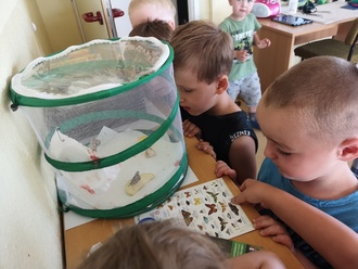 Den Werdegang der Raupen, von der Fütterung bis hin zur Verpuppung haben Kinder und Erzieher genauestens bestaunt. Ab dann hieß es aber warten und Geduld mitbringen. Keiner wusste genau in welcher Minute, Stunde oder Tag die Puppen aufbrechen würden. Da es nur wenige Stunden dauert, bis der Schmetterling aus der Puppe heraus zu fliegen beginnt, wollte dies natürlich keiner verpassen.