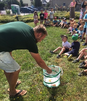 Mit den Sommerferien beginnt die Urlaubszeit. Viele Kinder und auch Erzieher sind in den Ferien und die Gruppen nicht mehr in gewohnter Besetzung vorhanden. Unseren Vorschulkindern winken wir zum Abschied und bekommen dafür nach und nach neue Fischchen in unser wildes Treiben.
