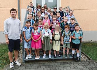 Klasse 1b - Standort Hohenleipisch mit dem Klassenlehrer Herr Rehm Fotoquelle: Stefanie Hartmann