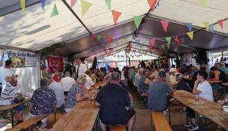 Was sich dahinter verbirgt? Ganz einfach, ein Rückblick auf das diesjährige Schützenfest in Döllingen. Nachdem bereits unmittelbar nach dem 30. mit der Planung begonnen wurde und alle Verträge unter Dach und Fach waren, ging es am Donnerstag in die wortwörtlich „heiße Phase“. Bei Temperaturen jenseits der 30 Grad wurde auf dem Festplatz der Zeltaufbau durchgezogen. Trotz Extremwetterlage waren mehr als 20 Helfer zugange. Bei entsprechender sehr guter Versorgung war dann am frühen Abend incl. Deko der größte Teil geschafft.