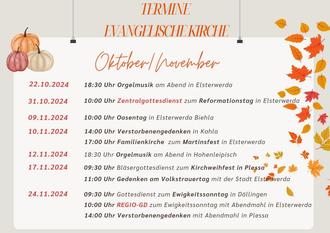 | 14.00 Uhr | Kahla, Kirche, Gottesdienst mit Verstorbenengedenken |