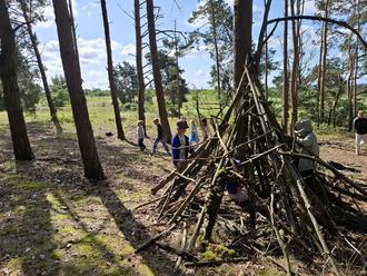 In diesem Jahr haben wir uns für die Feriengestaltung wieder schöne Höhepunkte im Team überlegt. Unter anderem eine Sportwoche, dort konnten die Kinder im Stationsbetrieb viele verschiedene sportliche Aktivitäten durchführen oder auch Sportspiele kennenlernen und sich dabei ausprobieren. In einer anderen Woche führten wir einen abenteuerlichen „Waldtag“ durch. Dort haben wir eine Waldhütte gebaut und die Kinder konnten sich an einer Säge versuchen.