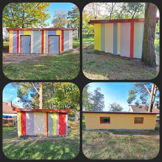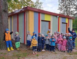 Als nach dem Wochenende unsere Kitakinder am 14.10.24 auf dem Spielplatz kamen, staunten sie nicht schlecht. Da hatte sich ja einiges verändert: Der Spielzeugschuppen leuchtete in bunten Farben, aber auch das Eingangstor und das Insektenhotel strahlten in neuen Glanz. Waren da vielleicht Heinzelmännchen am Werk gewesen?