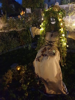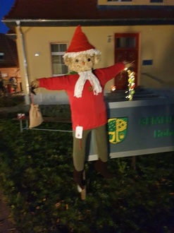 Die Vogelscheuchen wurden neu umgezogen und dekoriert und mit Hilfe von Helfried aufgestellt.