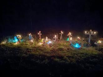 Links auf dem freien Waldstück entdecken wir einen Friedhof der Kuscheltiere, brennende Kreuze, Särge, Skelette, Grabsteine und noch einiges mehr… "Vielleicht bin ich ja im nächsten Jahr gar nicht mehr dabei?", denke ich ängstlich und durch und durch gegruselt.