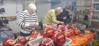 Jedes Jahr zur selben Zeit heißt es Kugeln sortieren und reparieren -Inventur-. Die großen und kleinen Weihnachtskugeln für unseren Weihnachtsbaum müssen jedes Jahr aufs Neue kontrolliert werden. Sauber und ganz sollen sie am Baum zu sehen sein. Aber im vergangenen Jahr sind 20 Kugeln zu Bruch gegangen. Sturm und schlechtes Wetter setzten den Kugeln mächtig zu.