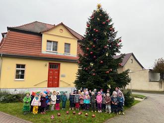 Auch die Kitakinder hingen dieses Jahr ihre Kugeln an den Baum.